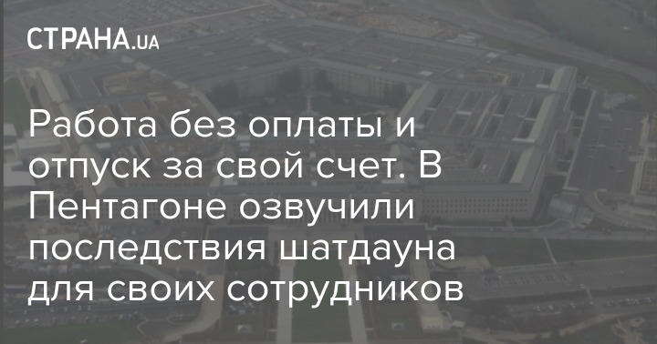 Она добавила, что работу прекратят абсолютное большинство гражданских служащих Пентагона.