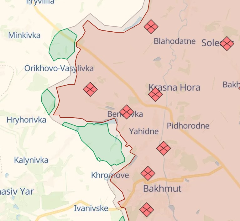 Что касается Бахмутского направления, то отдельные российские паблики стали вчера сообщать о захвате Орехово-Васильевки к северу от города. Правда, их данные разнились: от полного контроля до частичного. Сегодня они уточнили, что россияне вошли только на окраины села.