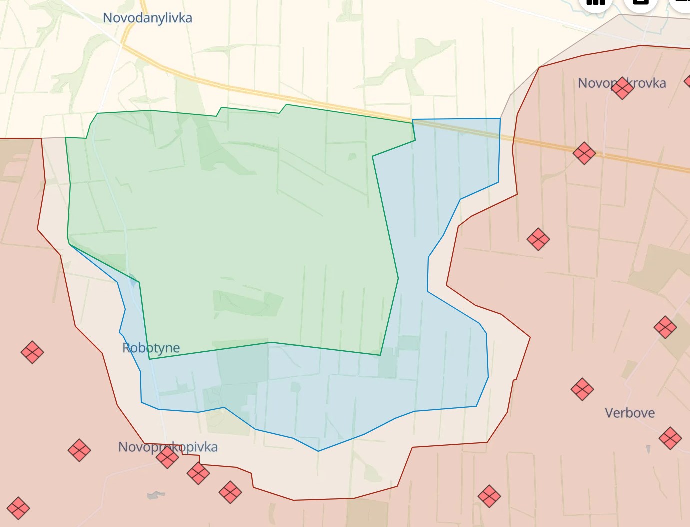 Российские паблики также пишут о контратаках россиян у Новопрокоповки к югу от Работино и со стороны Вербового и находящейся севернее Новофедоровки.
