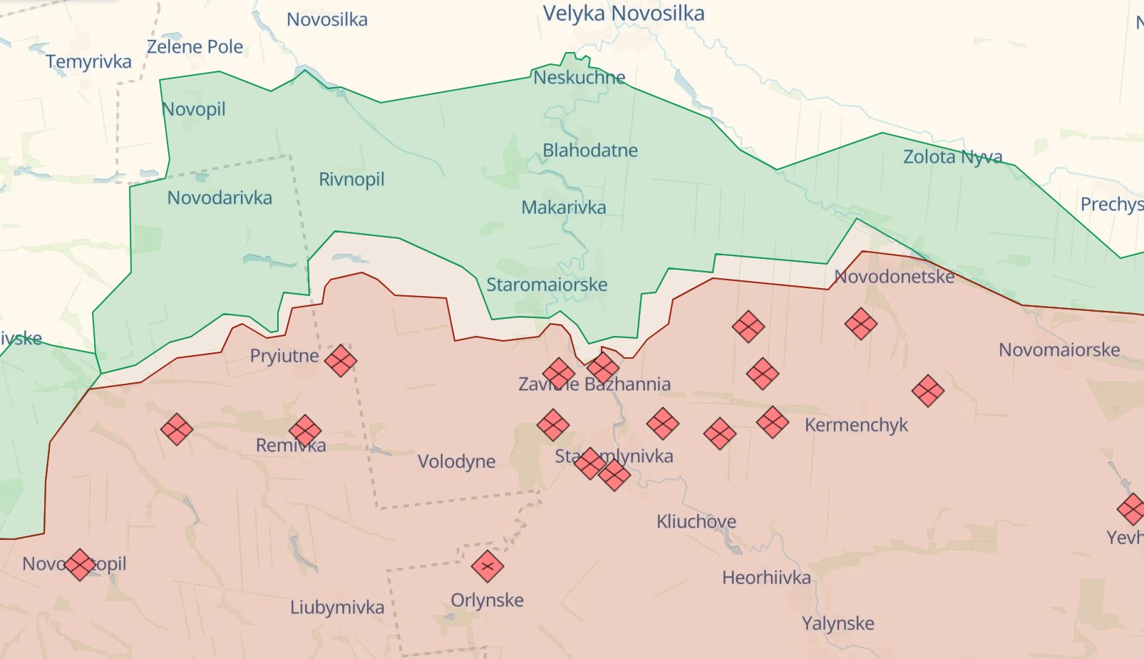 При этом роспаблики утверждают, что на Времьевском выступе российские войска, помимо перечисленных Генштабом сел, атакуют у Приютного, где несколько дней назад уже имели продвижение (как подтверждали украинские телеграм-каналы).