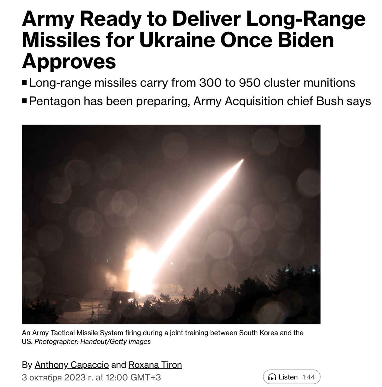 Пентагон готов отправить Украине ракеты ATACMS с кассетными боеприпасами, как только президент Джо Байден даст добро.
