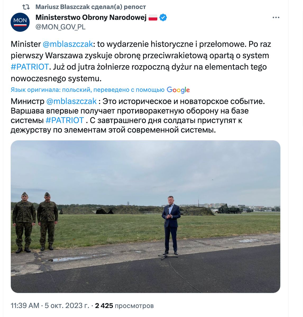 Об этом сообщил министр обороны Польши Мариуш Блащак.