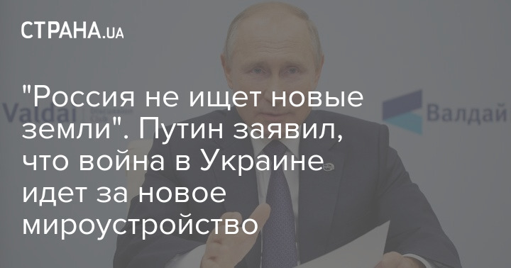 "Украинский кризис — это не территориальный конфликт, у РФ нет интереса с точки зрения отвоевания каких-либо территорий. Россия — самая большая страна в мире, она не ищет новые земли. Вопрос гораздо шире и фундаментальнее: речь идет о принципах нового мироустройства. Прочный мир установится только тогда, когда все станут чувствовать себя в безопасности, понимать, что их мнение уважается и что в мире существует равновесие, когда никто не способен по собственному желанию принудить остальных жить так, как это угодно гегемону", - заявил Путин.