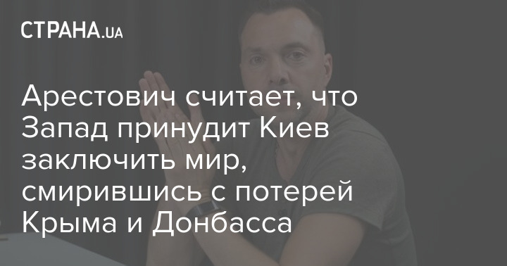 Бывший советник Офиса президента Алексей Арестович считает, что Запад будет принуждать Украину подписать мир, поступившись территориями Крыма и Донбасса.