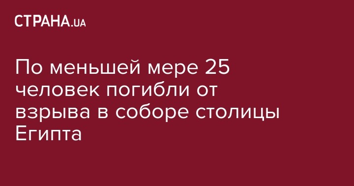 В воскресенье, 11 декабря, в результате взрыва не далеко от коптского собора в Каире погибло по меньшей мере 25 человек, еще 35 человек получили ранения. Об этом сообщает Reuters.