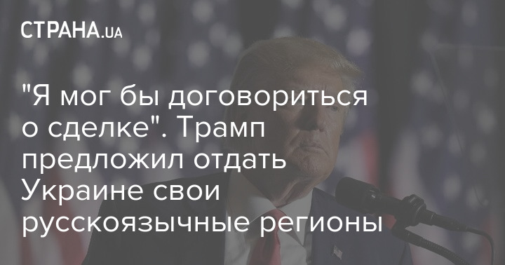 "Я мог бы договориться о сделке. Можно было бы отдать области, которые тяготеют к тому, чтобы быть российскими, где люди разговаривают на русском языке. Тогда можно было бы сохранить страну", - заявил он порталу Just the News.