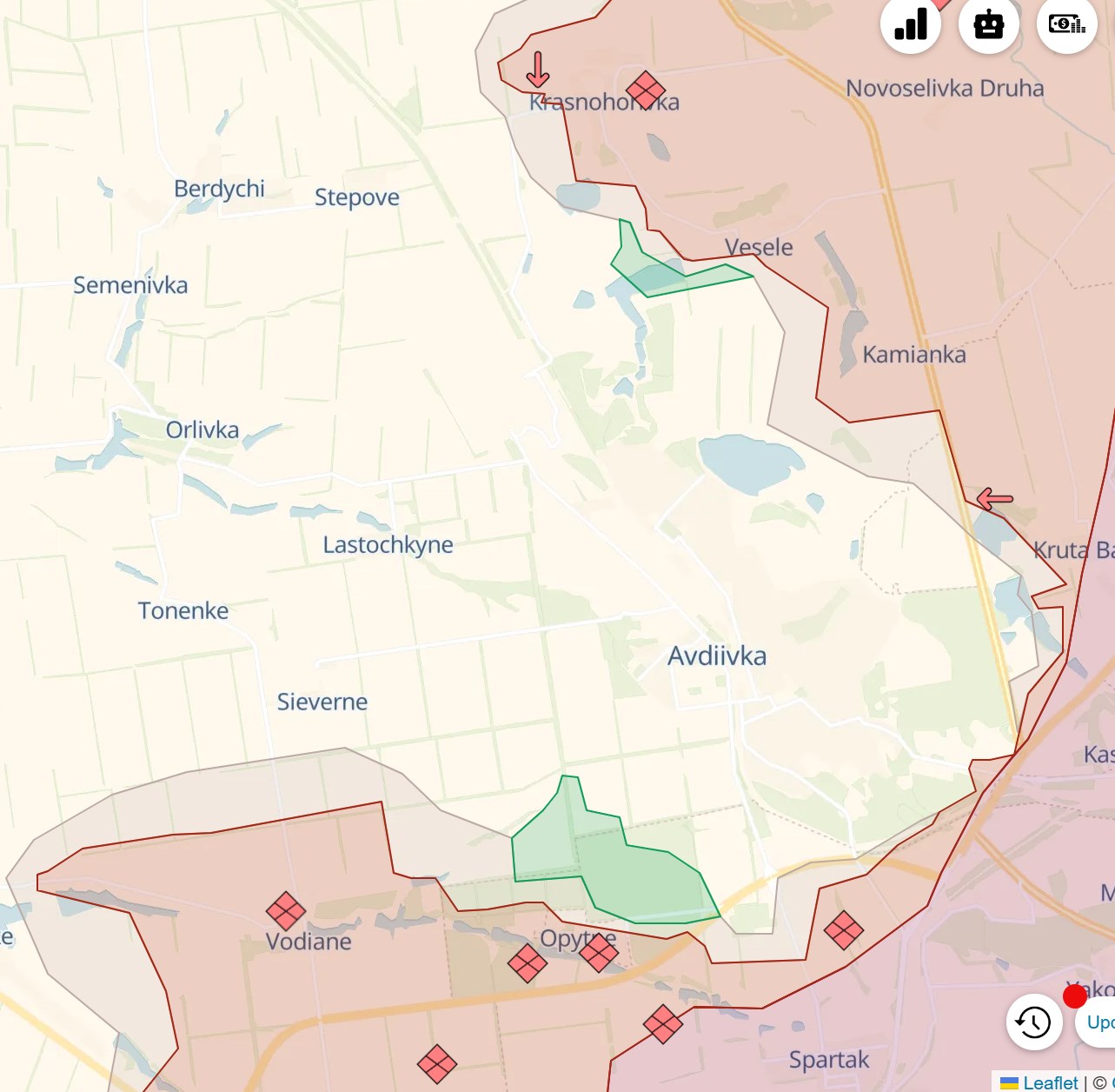 На севере со стороны Красногоровки удар был к Бердычам, откуда три километра до Орловки - ключевой точки, через которую ведется снабжение ВСУ в Авдеевке. По утверждениям ряда российских пабликов, бои идут сейчас на подступах к Бердычам. Другие военные телеграм-каналы РФ этого пока не подтверждают. Но они тоже пишут, что определенное продвижение на этом участке есть.