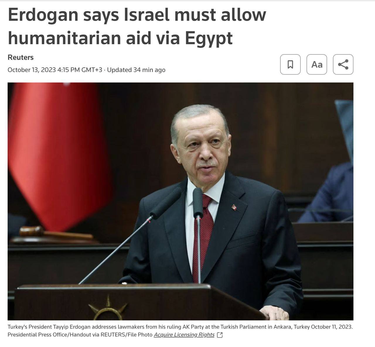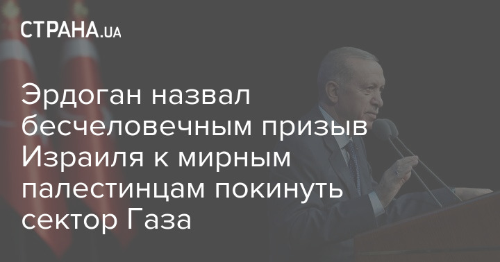 "Принуждение 2,5 миллионов жителей Газы, которые в течение нескольких дней подвергались неизбирательным бомбардировкам и были лишены электричества, воды и еды, мигрировать на крайне ограниченной территории, является явным нарушением международного права и ему нет места в человечности. Мы ожидаем, что Израиль немедленно исправит эту серьезную ошибку и срочно прекратит свои беспощадные действия против гражданского населения в секторе Газа", - заявил президент Турции.