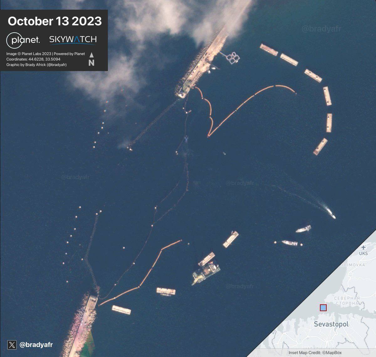 Как мы уже рассказывали, поражение кораблей могло стать следствием использования Украиной новых подводных дронов. Видимо, поэтому россияне установили заграждение на входе в Севастопольскую бухту, о чем свидетельствует снимок со спутника.