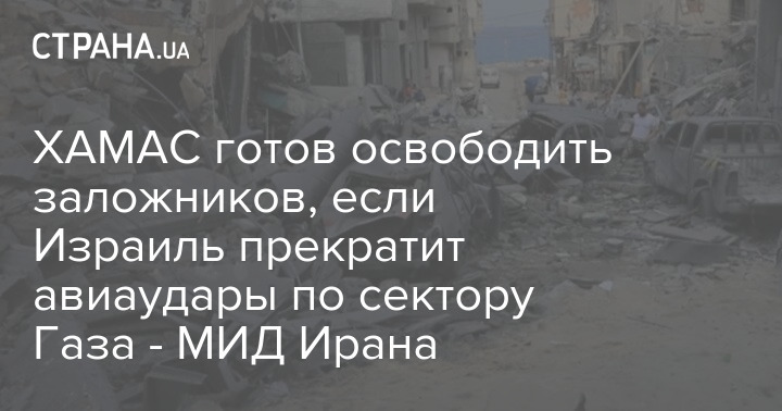 Министерство иностранных дел Ирана заявляет, что ХАМАС готов освободить заложников, если Израиль прекратит авиаудары по сектору Газа.