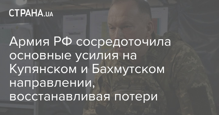 "Обстановка на Восточном фронте остается достаточно сложной. Враг продолжает вести наступательные действия фактически по всей полосе, сосредотачивая основные усилия на Купянском и Бахмутском направлениях. Враг несет серьезные потери, прежде всего в личном составе, но постоянно его восстанавливает за счет перемещения резервов, в том числе с территории РФ", - сказал Александр Сырский.