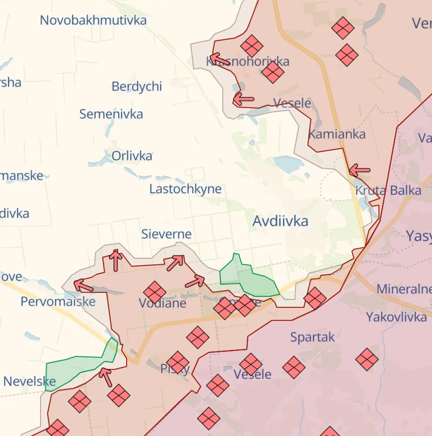 Особенно угрожающая ситуация сложилась на правом фланге (то есть к северу от Авдеевки), где россияне пытаются перерезать железную дорогу. И, хотя из Авдеевки ведет еще несколько дорог, как асфальтированных, так и проселочных, "но все то же самое было под Бахмутом".