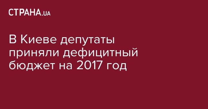 Киевский городской совет сегодня принял городской бюджет на 2017 год в дефицитом в 1 млн. грн. Доходы бюджета заложены в 38,238 миллиарда гривен, расходы - 38,239 млрд грн. За соответствующий проект решения проголосовали 73 депутата при минимально необходимых 61. Об этом сообщает сайт Киеврады.