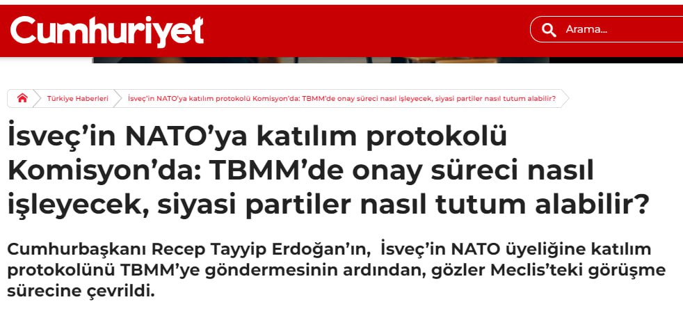 По данным издания, в турецком парламенте признают, что Швеция выполнила все выдвинутые Анкарой требования по борьбе с терроризмом и поставки оружия, но возмущены акциями с сожжением Корана в стране. Поэтому партия власти не склонна "торопить" процесс ратификации протокола о вступлении Швеции в НАТО, говорится в материале.