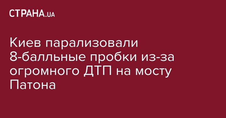 Из-за масштабного ДТП на мосту Патона образовалась огромная пробка от ст. м "Лыбидская" до жилмассива Русановка. Движение по мосту Патона в направлении левого берега парализовано: скорость потока там составляет 3 км/ч. Кроме того, улица Саперно-Слободская стоит в заторе в направлении Южного моста.