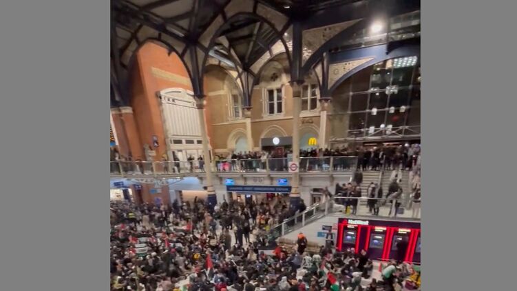 В Лондоне пропалестинские демонстранты заполнили железнодорожный вокзал и блокировали движение поездов в столице Великобритании.