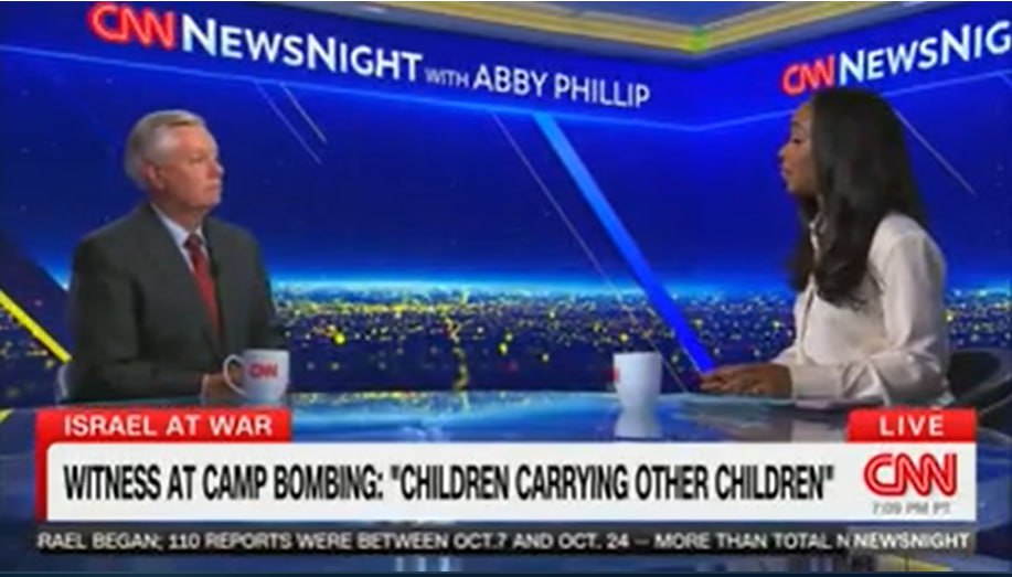 Сенатор появился на CNN во вторник вечером после авиаударов ЦАХАЛа по лагерю беженцев в секторе Газа, в результате которых погибли десятки человек.