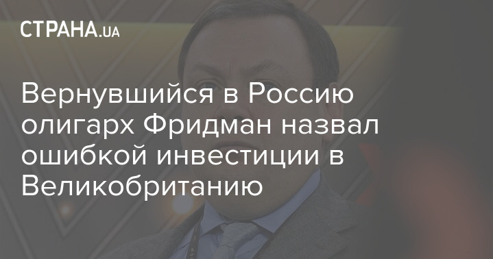 Российский олигарх Михаил Фридман после возвращения в РФ назвал ошибкой инвестиции в Великобританию.