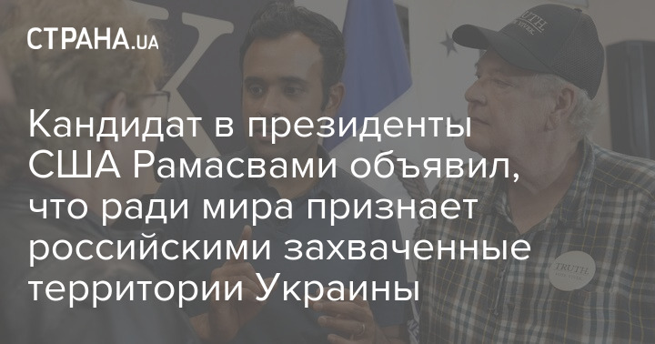 Кандидат в президенты США Вивек Рамасвами в случае своей победы на выборах предложит сделку, которая фактически передаст аннексированные части Украины России.