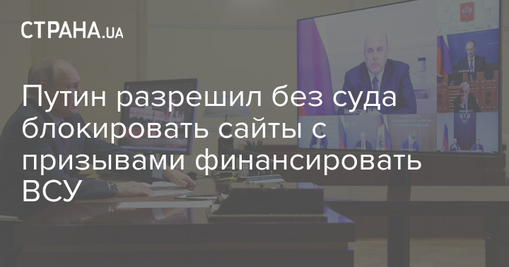 Президент России Владимир Путин подписал закон, позволяющий без суда блокировать сайты с призывами к финансированию Вооруженных сил Украины.