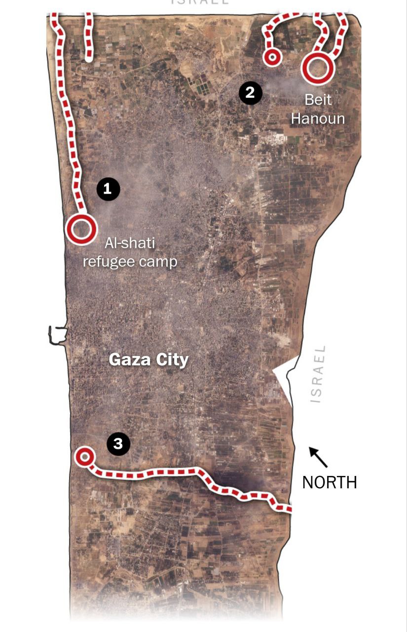 "Войска, приближающиеся с востока, продвинулись вглубь Газы примерно на четыре мили, пересекая анклав по всей ширине и фактически отрезая город Газа с юга", — пишет Washington Post.