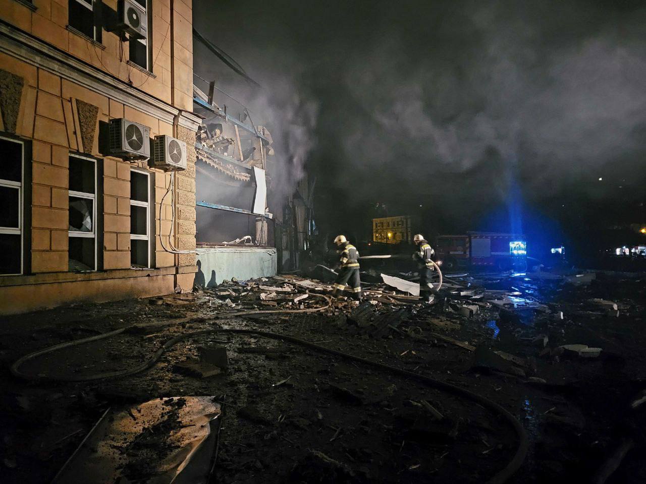 Кроме того, есть попадание ракет по промышленному зданию, которое уже не использовалось. Взрывной волной повреждены несколько многоэтажных жилых домов.