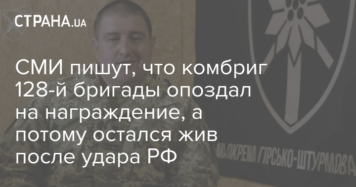 Источники в 128-й бригаде подтвердили информацию, что ее комбриг Дмитрий Лысюк опоздал на награждение военных, а потому остался жив, поскольку приехал через несколько минут после удара РФ.