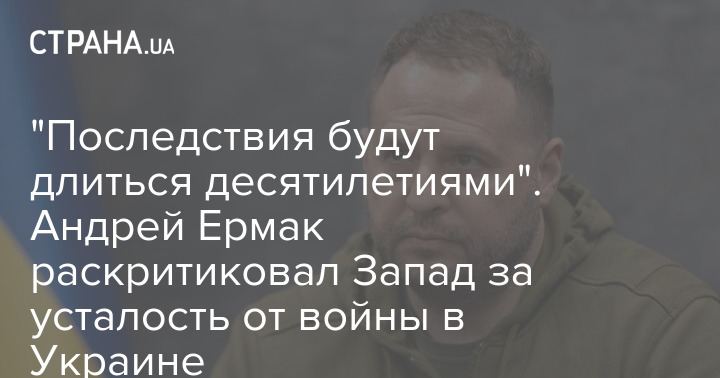 Глава Офиса президента Андрей Ермак в комментарии изданию Politico раскритиковал Запад за "усталость от войны".