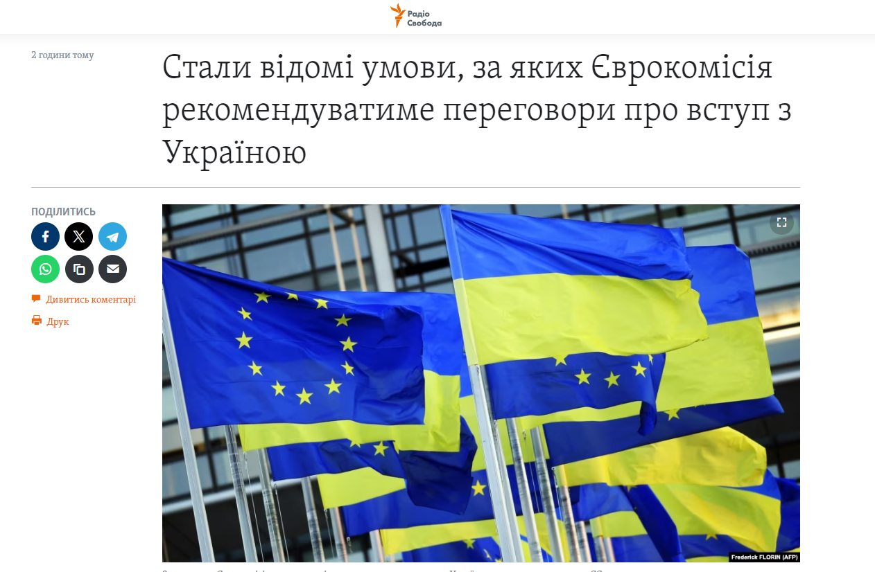 Переговоры Еврокомиссия рекомендует одобрить, когда Украина предпримет следующие шаги: