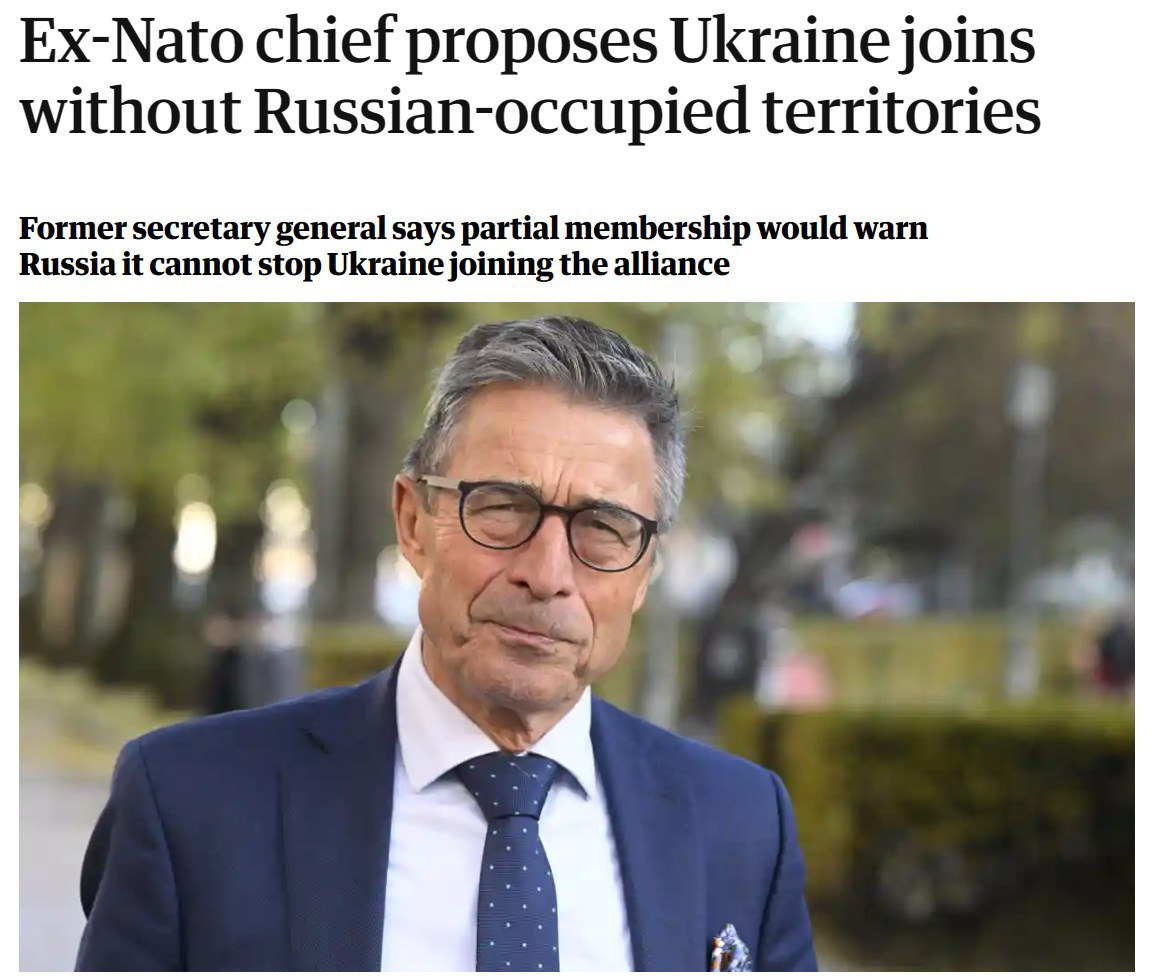 Бывший генсек НАТО Андерс Фог Расмуссен предложил, чтобы Украина присоединилась к Североатлантическому Альянсу без территорий, захваченных Россией.