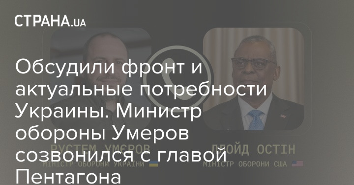 Министр обороны Украины Рустем Умеров провел телефонные переговоры с главой Пентагона Ллойдом Остином. Стороны обсудили актуальные потребности Украины.