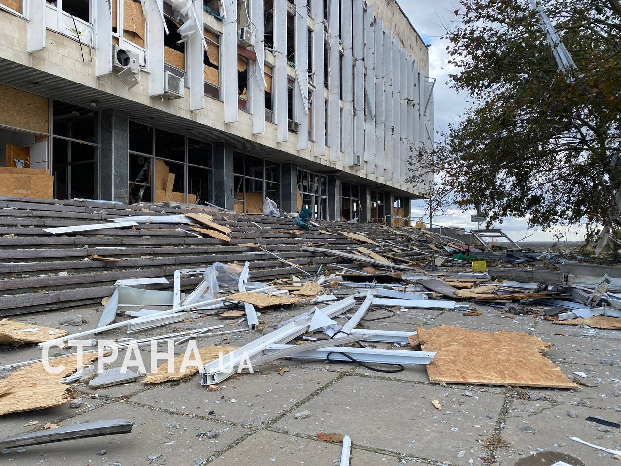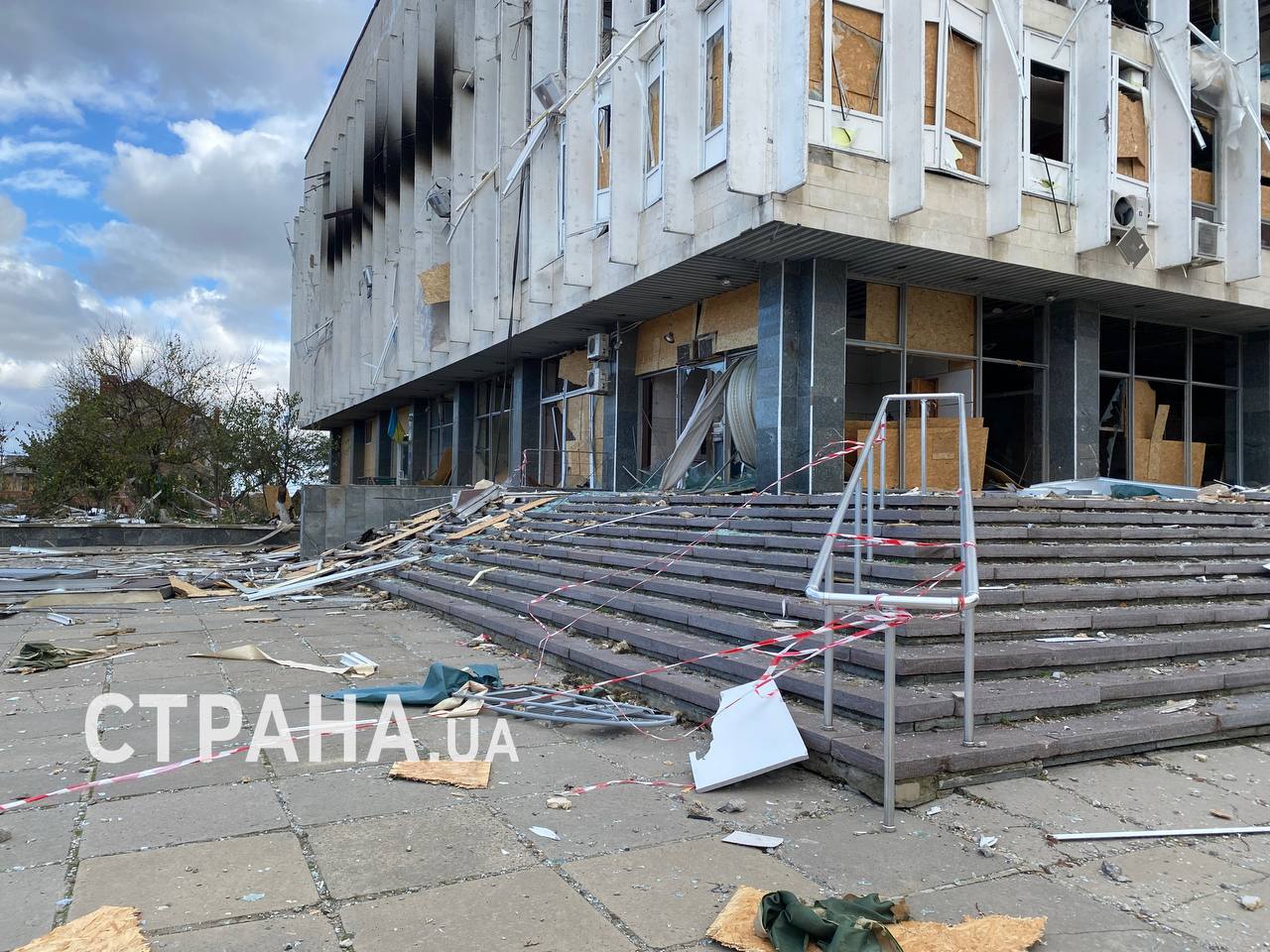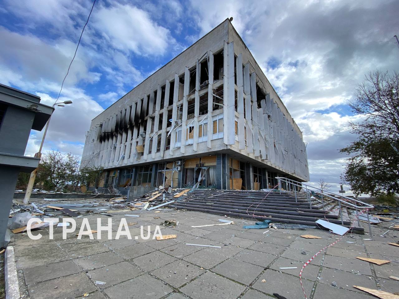 В этом здании российские захватчики разместили свой штаб. Атаку на штаб совершили во время заседания офицеров РФ.