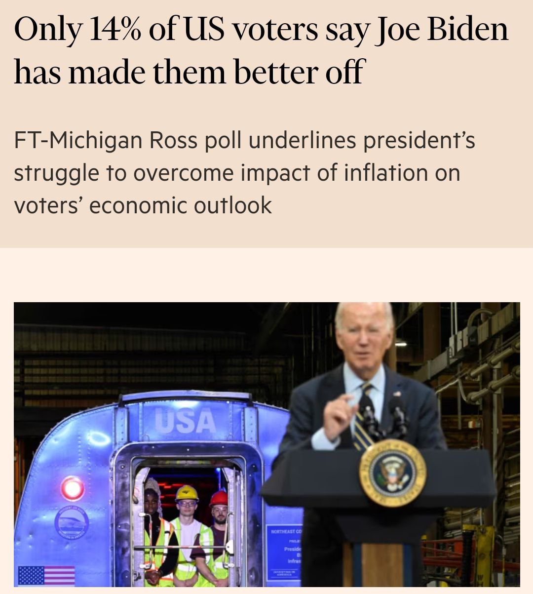 Почти 70 процентов избирателей считают, что экономическая политика Байдена либо нанесла ущерб экономике США, либо не оказала никакого влияния.