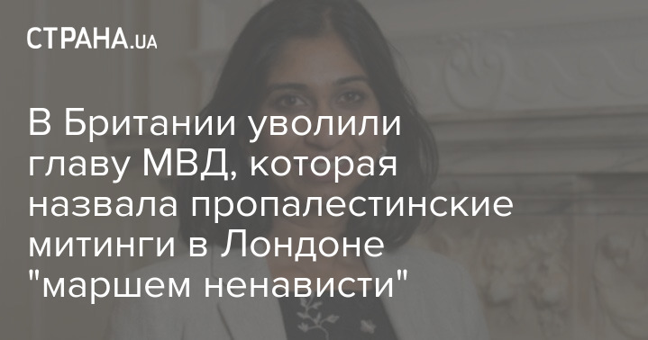 В Британии уволили главу МВД, которая назвала пропалестинские митинги в Лондоне "маршем ненависти"