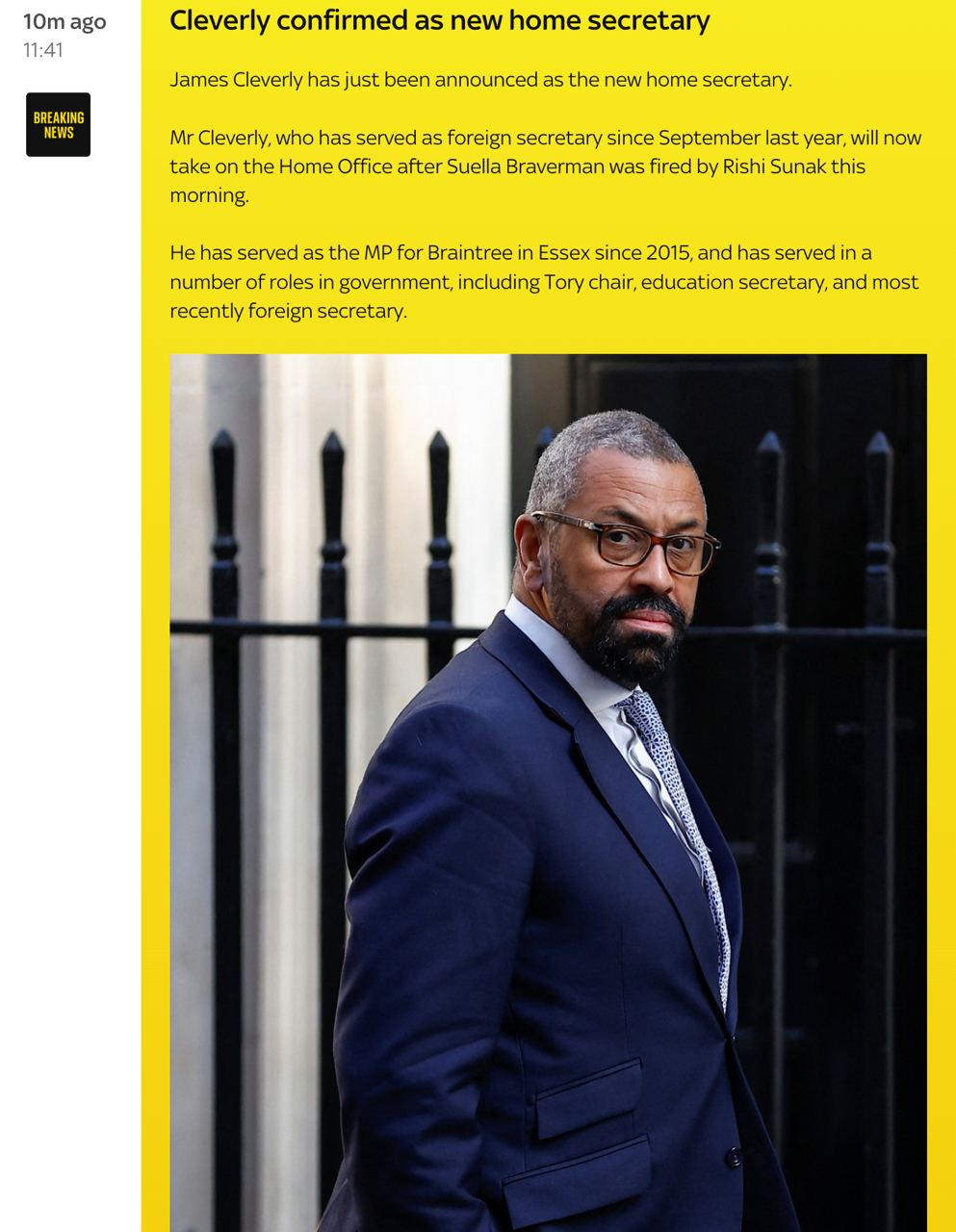 Новым министром внутренних дел Британии назначен Джеймс Клеверли, возглавлявший МИД.