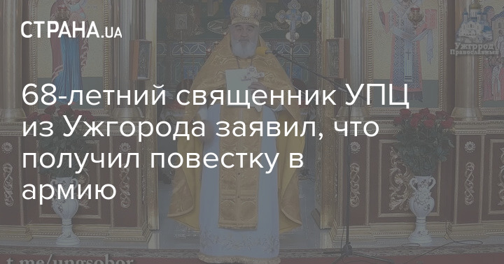 68-летний священник УПЦ из Ужгорода заявил, что получил повестку в армию