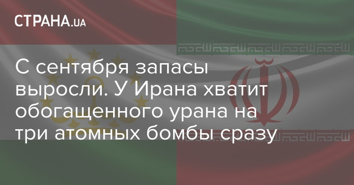Как пишет Reuters, с сентября этого года запасы обогащенного до 60% урана в Иране выросли до 128,3 кг.