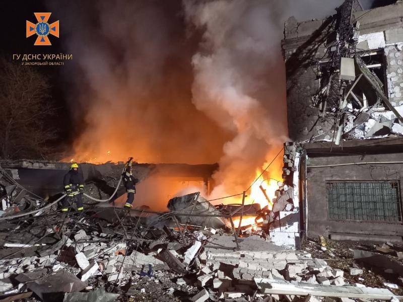 Также в ночь на субботу четыре дрона ударили по объекту инфраструктуры в Запорожье.