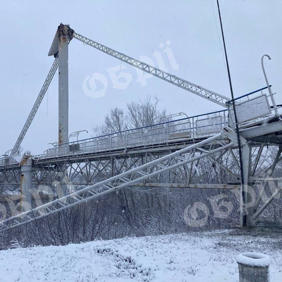 В Изюме Харьковской области упала в реку Северский Донец опора пешеходного моста.