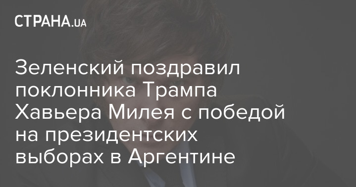 Президент Украины Владимир Зеленский поздравил Хавьера Милея с победой на президентских выборах Аргентины и поблагодарил его за "чёткую позицию" поддержки с самого начала вторжения РФ.