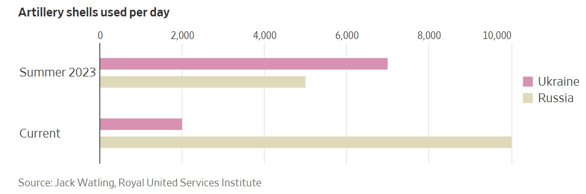 Западные СМИ продолжают писать о нехватке снарядов у ВСУ. России отстреливает их в Украине в пять раз больше, пишет Wall Street Journal.