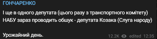 Ранее Гончаренко анонсировал новые дела в отношении депутатов сегодня. Он предполагает, что НАБУ хочет показать свою эффективность в день голосования в Верховной Раде законопроекта об увеличении штата Бюро.