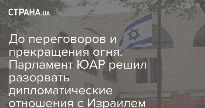 Парламент Южноафриканской Республики проголосовал за решение закрыть посольство Израиля, разорвать дипотношения и приостановить деятельность израильского посла в стране.