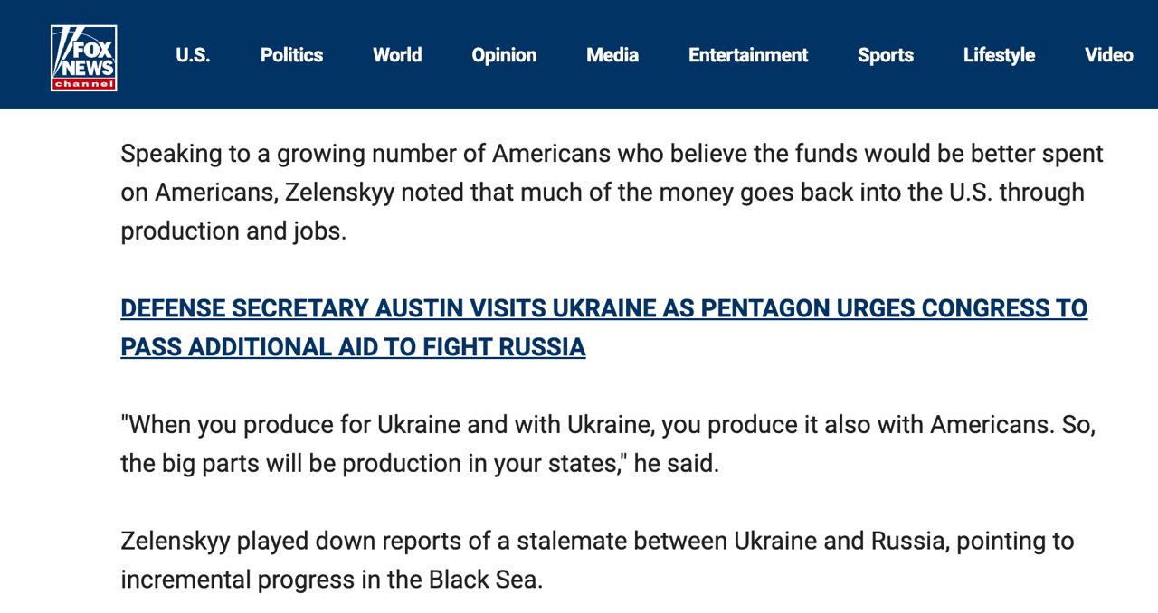 Президент Владимир Зеленский аргументировал для американцев необходимость продолжать оказывать помощь Украине тем, что большая часть этих денег возвращается в США через производство и рабочие места.