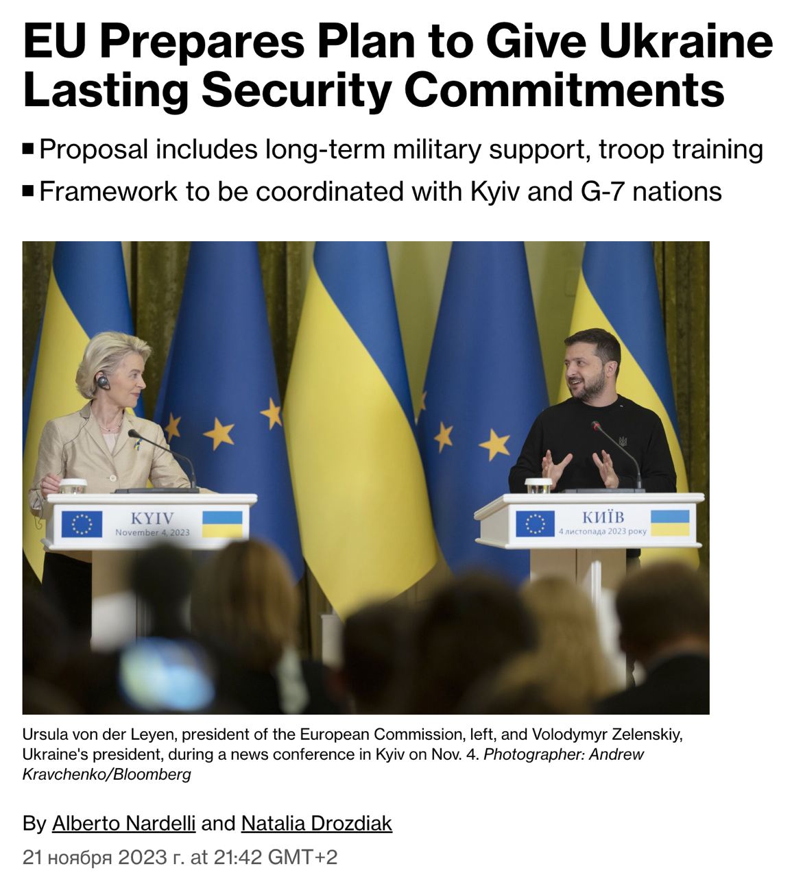 Также ЕС представил государствам-членам проект документа о предоставлении Украине долгосрочных обязательств в области безопасности. Он включает механизм долгосрочной военной поддержки, обучение украинских войск и помощь в развитии собственной оборонной промышленности.