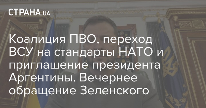 Коалиция ПВО, переход ВСУ на стандарты НАТО и приглашение президента Аргентины. Вечернее обращение Зеленского