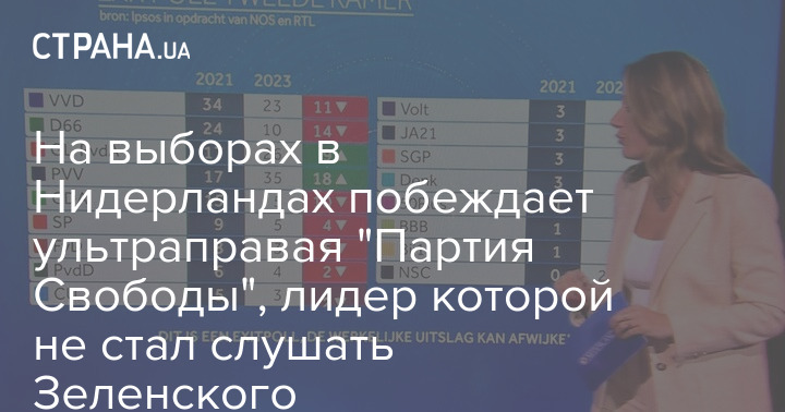 На выборах в Нидерландах побеждает ультраправая "Партия Свободы", лидер которой не стал слушать Зеленского