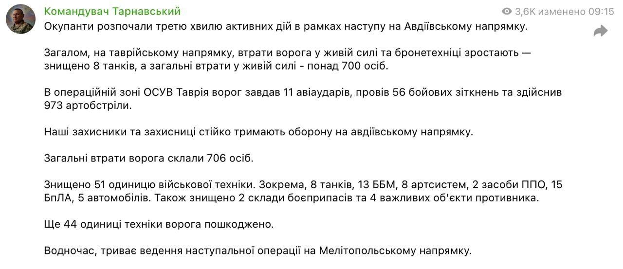 14.05 Армия РФ начала третью волну штурма под Авдеевкой, сообщает командующий Тарнавский.