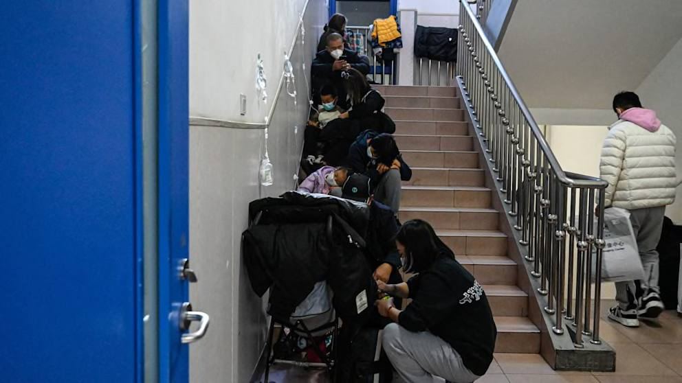 Детские больницы в многих городах, в том числе Пекине, переполнены. Пациентам приходится стоять в очередях в отделениях неотложной помощи по два часа.