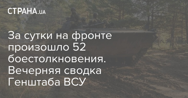 За сутки на фронте произошло 52 боестолкновения. Вечерняя сводка Генштаба ВСУ